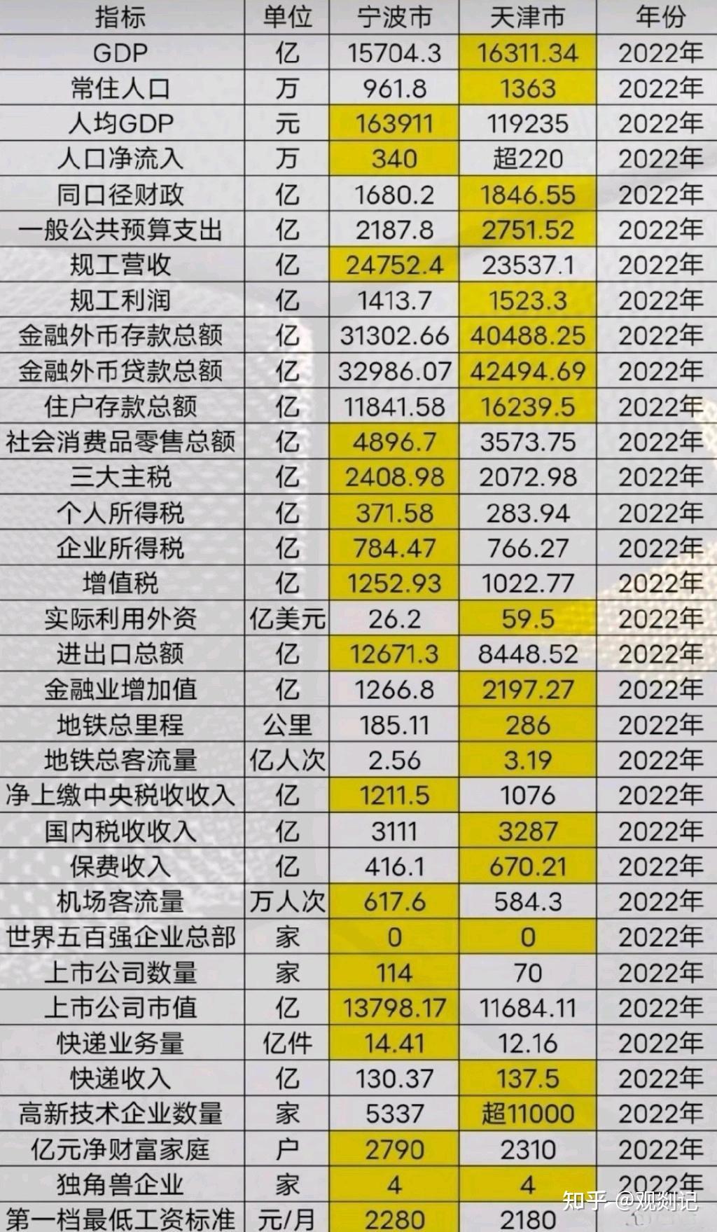 从2022年的财政支出自给率来看,天津的67.1%低于宁波的76.8%。,虽然财政净贡献的数值位处宁波所在的浙江之后,但天津是9个财政净贡献省市之一。宁波的规上工业营收超过天津,但规上工业利润不如天津。两城都是工业强市的代表,虽然近年来我国的产业升级大潮里,天津的存在感较弱,错失了一些机遇,但2022年实际利用外资方面天津超过宁波一倍以上,今年空客第二条生产线的立项将进一步夯实其产业底气。