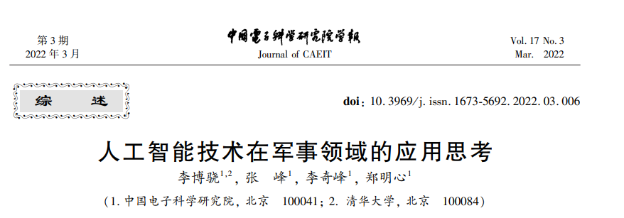 在人工智能技术展现出汹涌澎湃发展趋势的当下,建设以智能技术武装的新型军队,打赢 以信息化智能化为特征的新型战争,成为当前世界主要军事强国的优先发展目标。以“意志的屈 服”、“不战而屈人之兵”为标志的“制智能权、制意识权”将成为未来军事斗争的最高级、最有效、最 具震慑力的军事优势。文中从军事作战特点和人工智能的优势入手,分析军事领域对人工智能的 需求。针对感知、指挥、打击、互联的作战链条,提出人工智能技术在军事领域的应用方向,探索如 何通过人工智能在军事领域的应用“有效塑造态势、管控危机、遏制战争、打赢战争”。