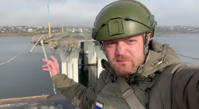 战地记者已Kots已撤到河左岸。报告说昨夜炮声火箭声不断。清晨两声巨大的爆炸,房子都感觉要震塌了。他猜不是卡霍夫卡大坝爆了就是安东诺夫大桥爆了,出来转了一下,发现是大桥的两段桥面被炸掉了。