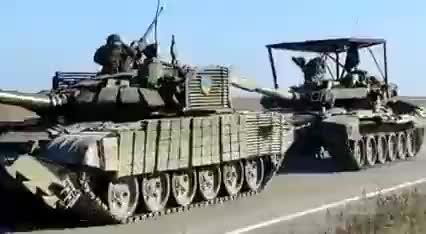 虽是有计划的撤退,但俄军仍出现了丢弃重要装备的情况。以下是俄军事博主发布的乌军T-72拖拽一辆俄军T-90坦克的视频。