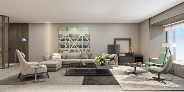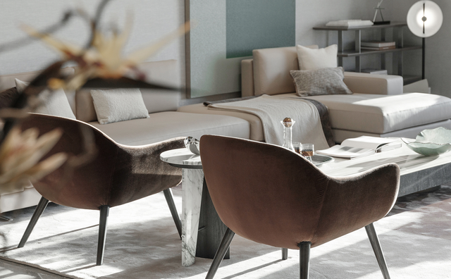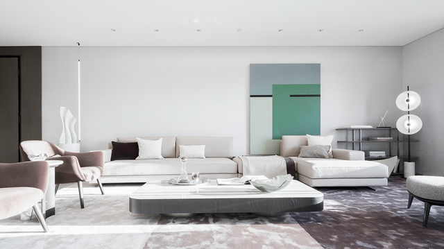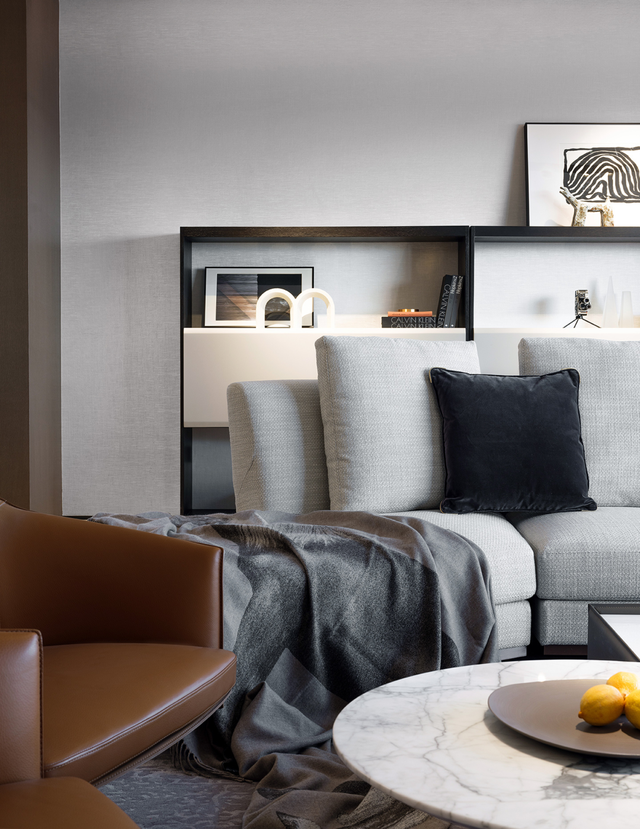 沙发、茶几都是国际大牌,灯光氛围由亚洲知名设计师设计,满足每个居家时刻的氛围感。