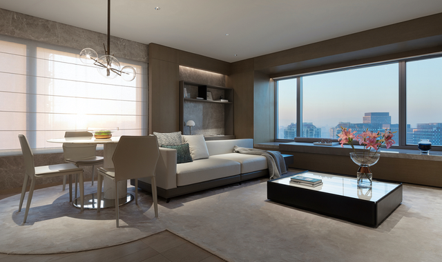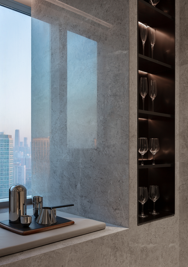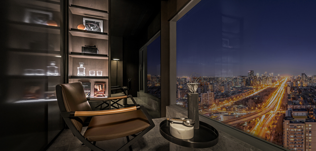 设计师甚至体贴地预留了一个可以俯瞰京城车水马龙的角落成为雪茄、阅读区域,这是属于一个人的极致奢侈。
