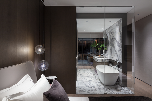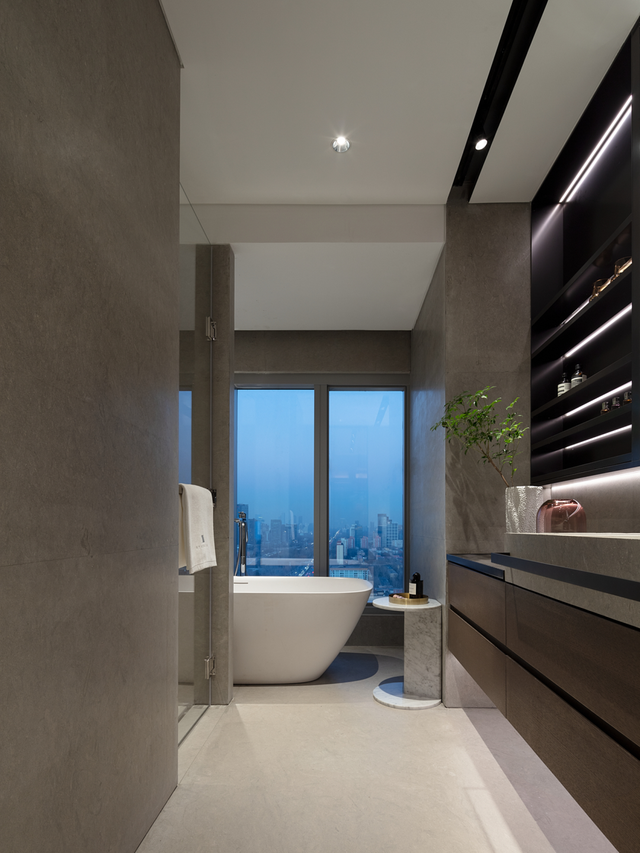 卫浴是最体现奢华等级的空间,除了全球顶级的设备配置,设计师特意将独立浴缸置于特殊位置,让酒店般的享受最大化。