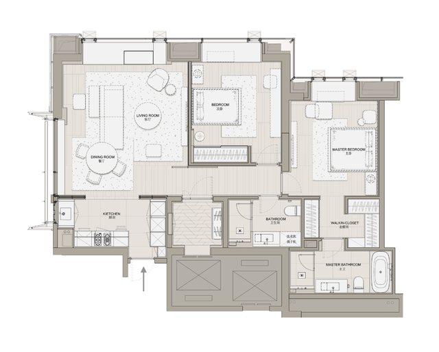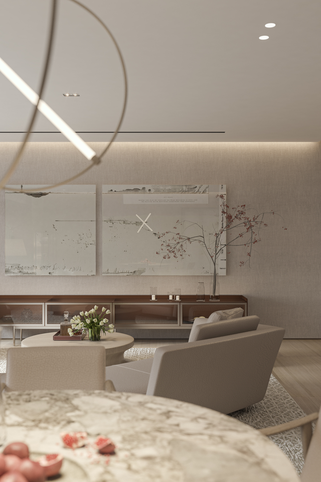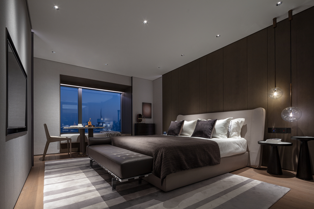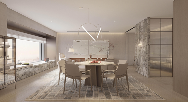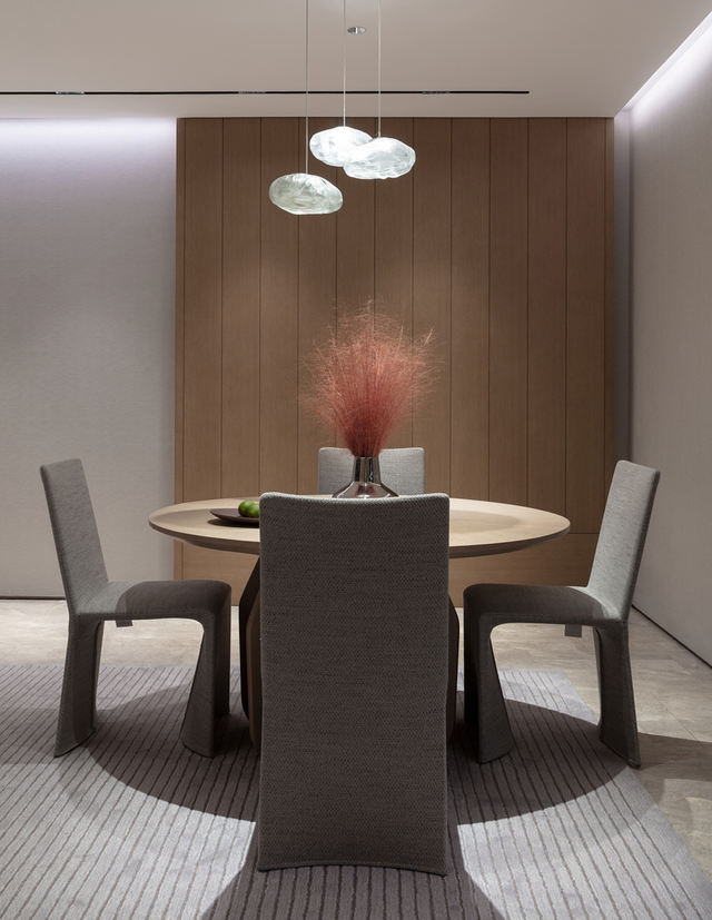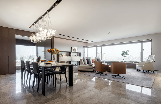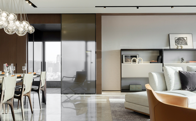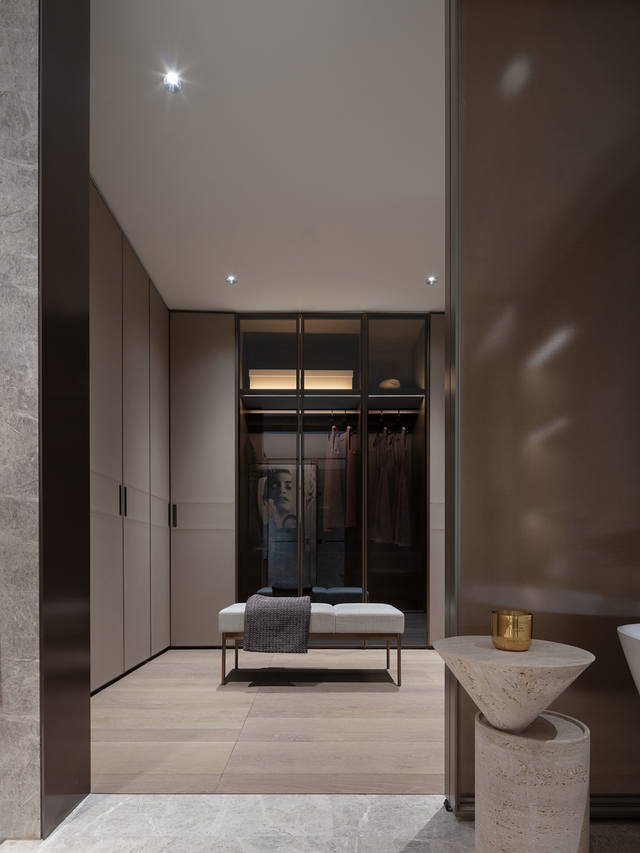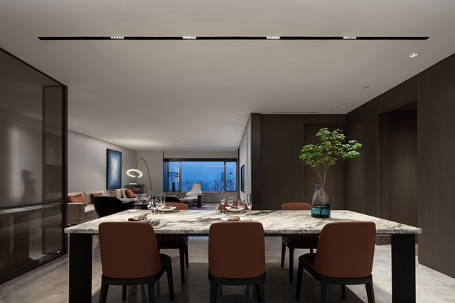 以一种“懂得”的方式,去体贴客户,把业主内心真实的关于“生活本源”的需求用物化的语言表达出来。在多点布局的客餐厅,衣帽间和卫生间的布局方式、东西融合的设计语言等,这在精神层面上与东京、纽约、伦敦的顶级现代豪宅极为贴近,也更贴合项目本身的定位。