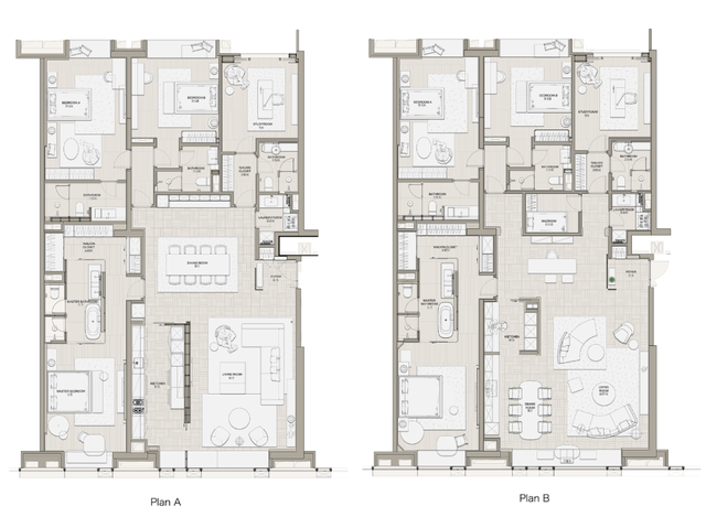 自由是另一种奢华象征。设计师注意到多代人共同生活趋势的回潮,这是一种相互丰富的关系。生活内容的序列指导了D户型的空间布局,设计师将视点聚焦于所有家庭成员创造共度时光的机会上,确保功能区之间的灵活性、可访问性并关注私人隐私和公共空间的平衡。