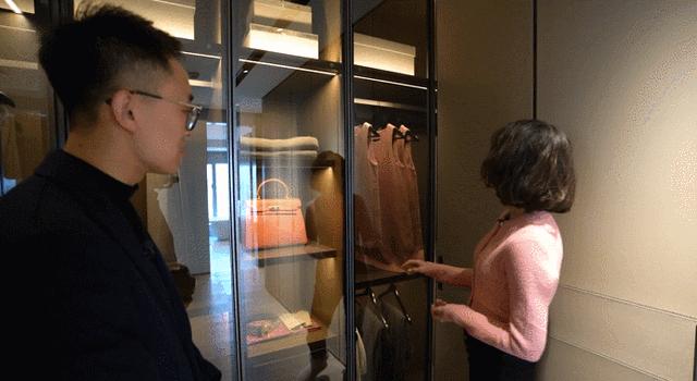 超大衣帽间,能开180°的柜门,背面的穿衣镜丝毫不影响正面的通透。五金件手感极好,阻尼感适中。