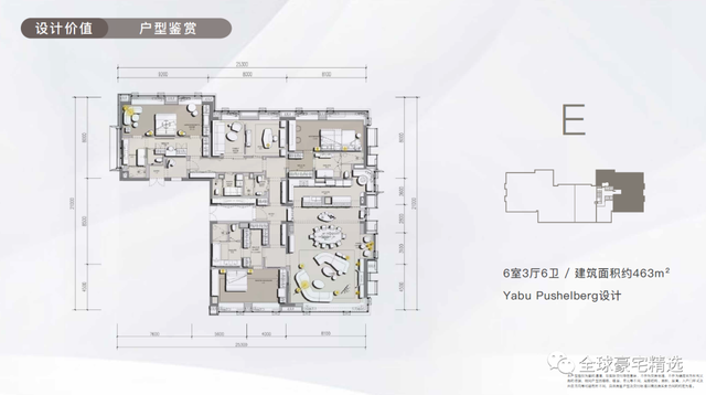 5、顶层官邸E户型463平,6室3厅6卫,价格单聊
