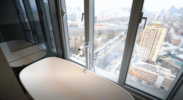 观景浴缸,晚上泡着澡看楼下堵车,真·二环边的奢享。
