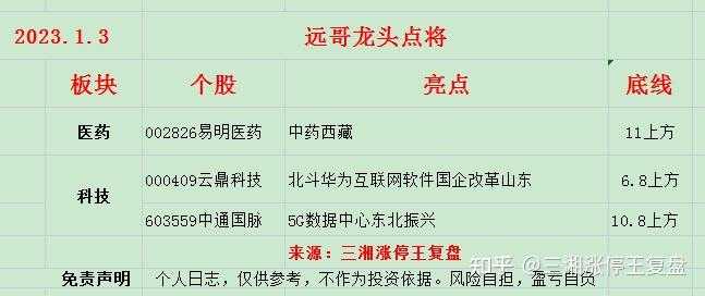 国企真的很重要,因为很多股票是国企。民企的牛股股东构成一般就是多自然人或单个基金。不能太多机构。游资要炒作的股,要简单,要纯粹,要好搞!消费补跌,高位有的就结束了,低位的补涨与否看资金态度,远哥昨日点将的莫高股份和西部创业,可按计划,在底线6、4.7上方博弈或强留弱卖。医药,进入到2023年还在炒。冬天了,保健康,防重症。蒙脱石散,这也能屯?不要乱吃药,屯个好身体,抵抗一切!新能源,目前仍有转型的,转型光伏的更吃香,带点抗病毒,更受市场欢迎。2023年第一个交易日,沪指从3000站上了3100,创业板更是难得的7股20cm涨停,几乎是单边上涨,大喜大顺,大吉大利!