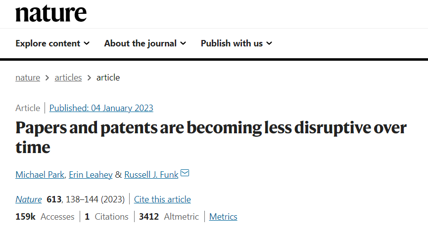 但Nature在年初最新发布的文章中,展示了对科研论文发展现状的悲观态度。Nature认为,近年来科研论文数量激增,但没有颠覆性创新。
