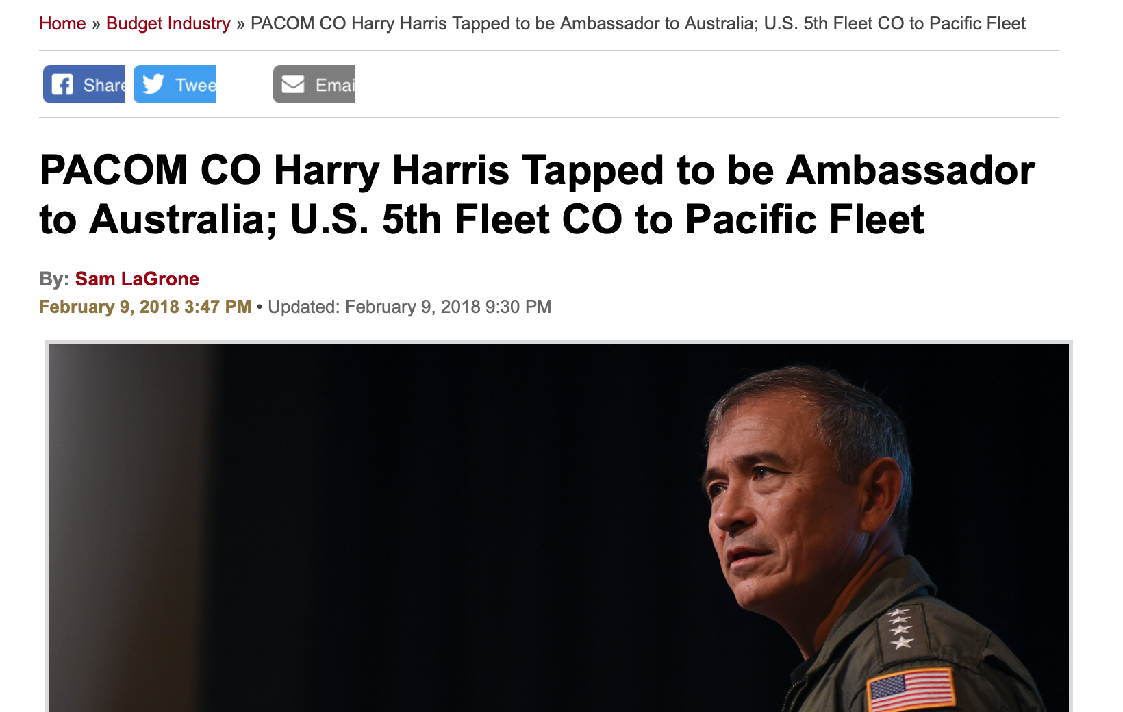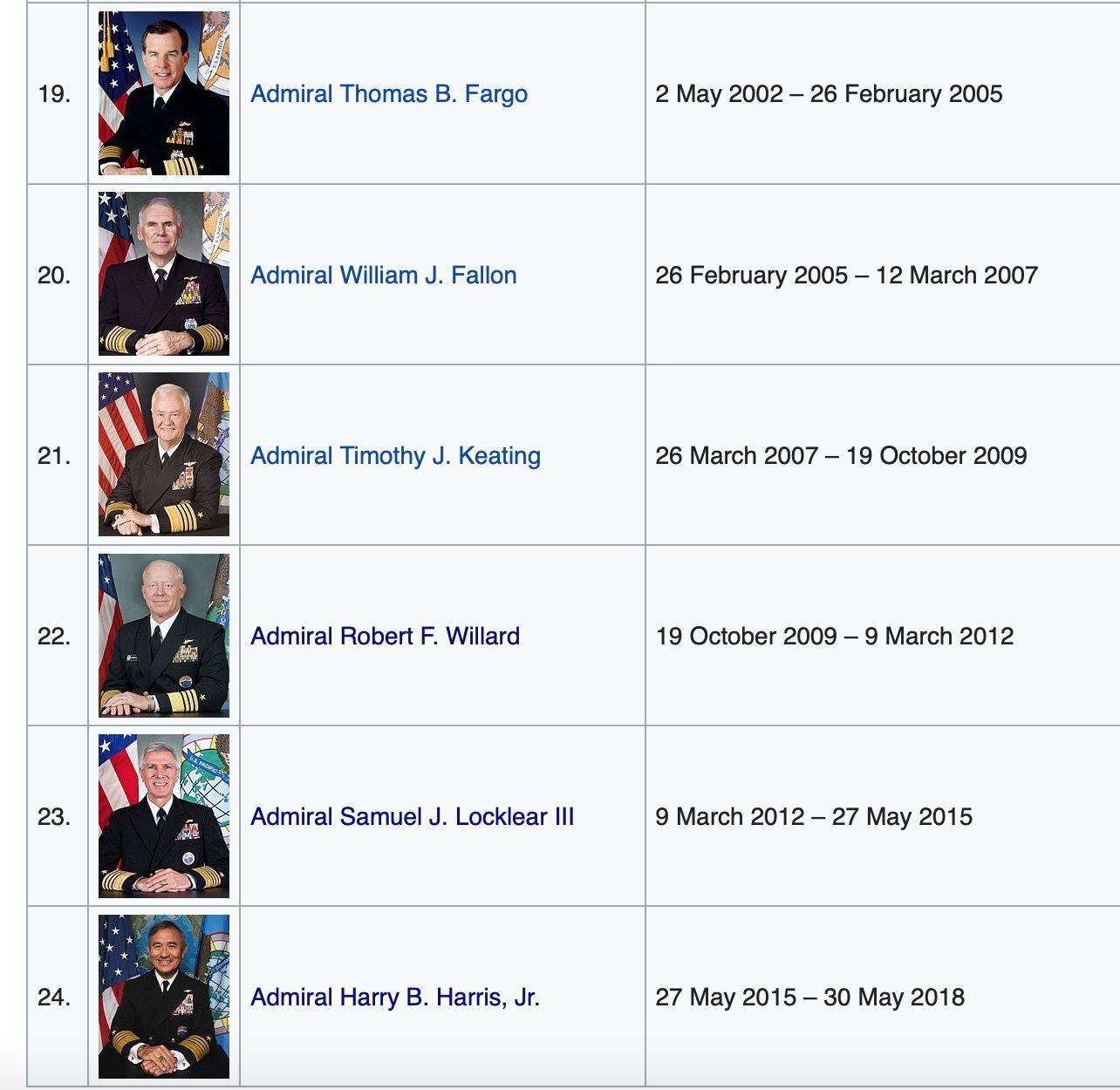 哈里斯之前两届印太司令部司令,都是3年任期到后卸任,甚至还有因为个人原因更短的。现在参谋长联席会议的全部成员中,最老的也才61岁(联席会议主席Mark A. Milley),哈里斯1956年出生,2018年卸任的时候已经62岁,年龄便限制了进一步升官进入参谋长联席会议。