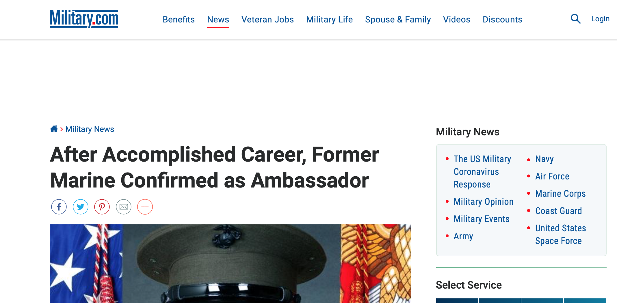把有经验的指挥官退役后提名为大使是美国国务院经常性的行为。