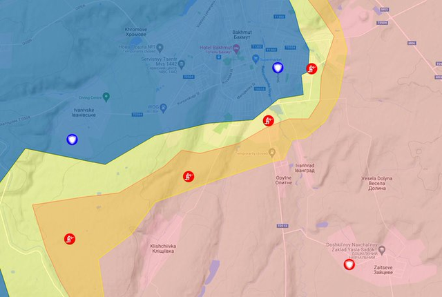 在巴赫穆特南部,俄军的攻势有所减缓,在昨日对Ivanivske东南的进攻被击退后,似乎没有发动新的攻势。