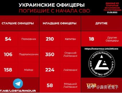 截至2022年9月21日,公开消息来源证实至少1178名乌克兰武装部队军官死亡。