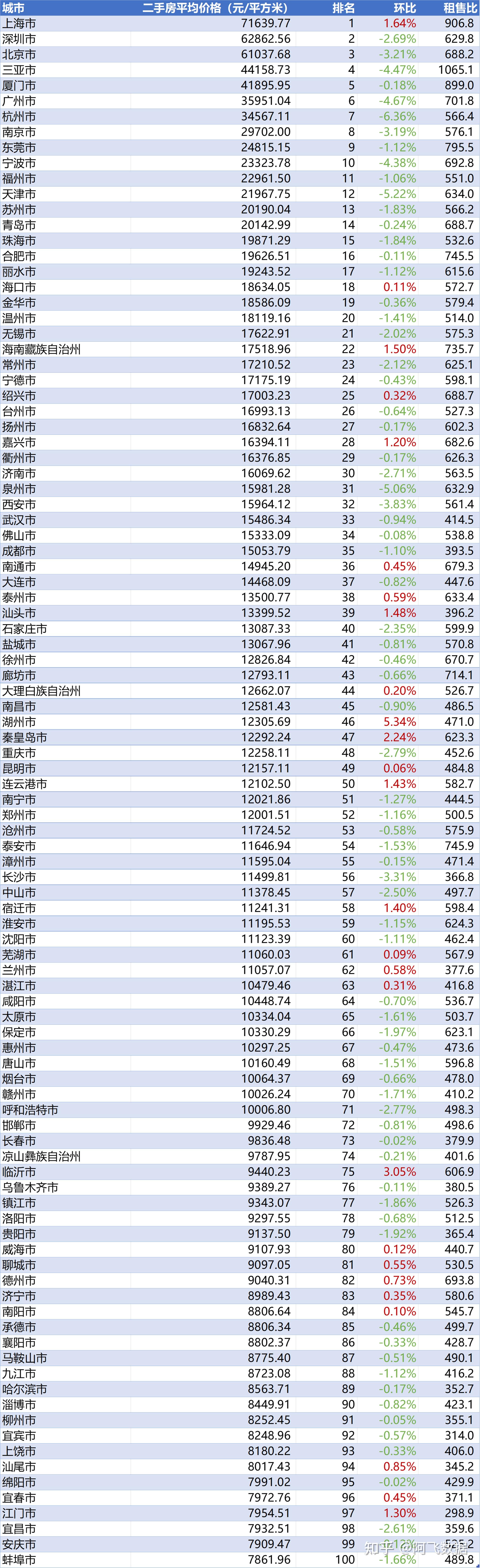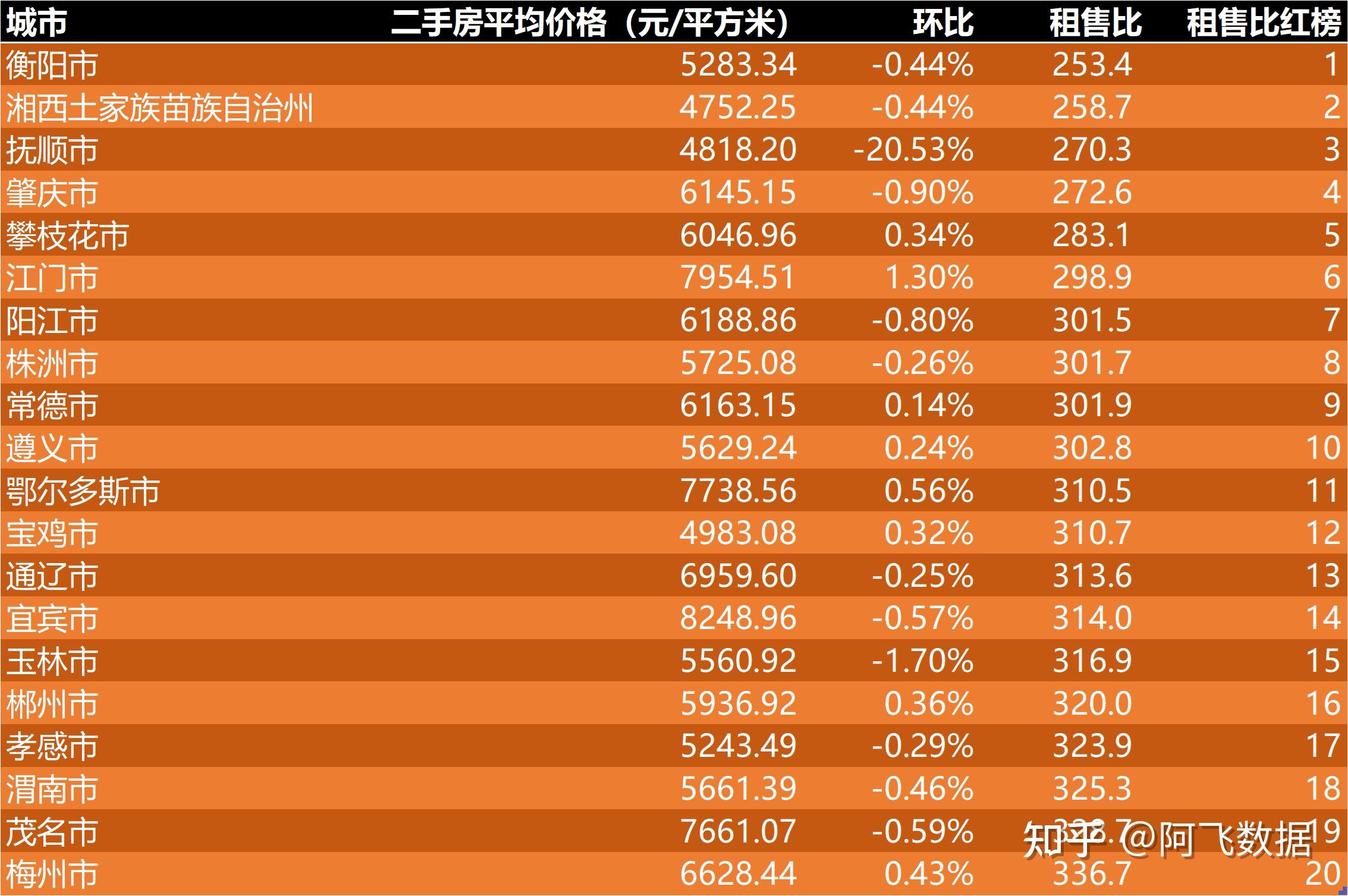 以下是2023年4月第2周(2023年4月10日-2023年4月16日)二手房价格城市排行榜和租售比黑红榜: