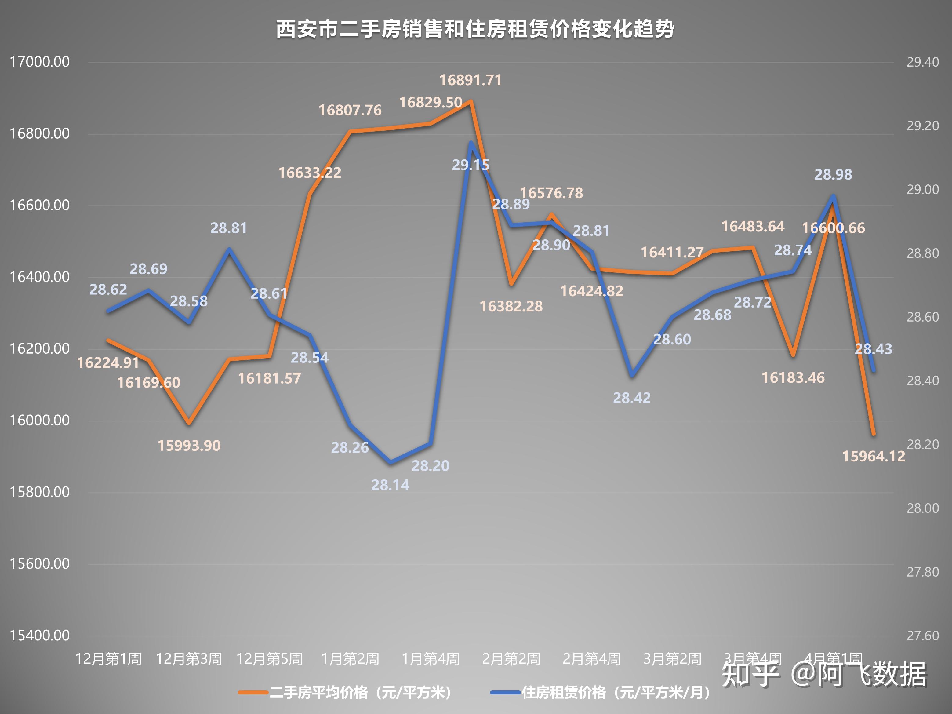 西安市二手房价格波动下行,环比(较之2023年4月第1周)跌幅3.83%。西安市二手房价格虽然呈现一种震荡的现象,但每次探底的深度都在不断加深。因此还是判定为整体下跌。