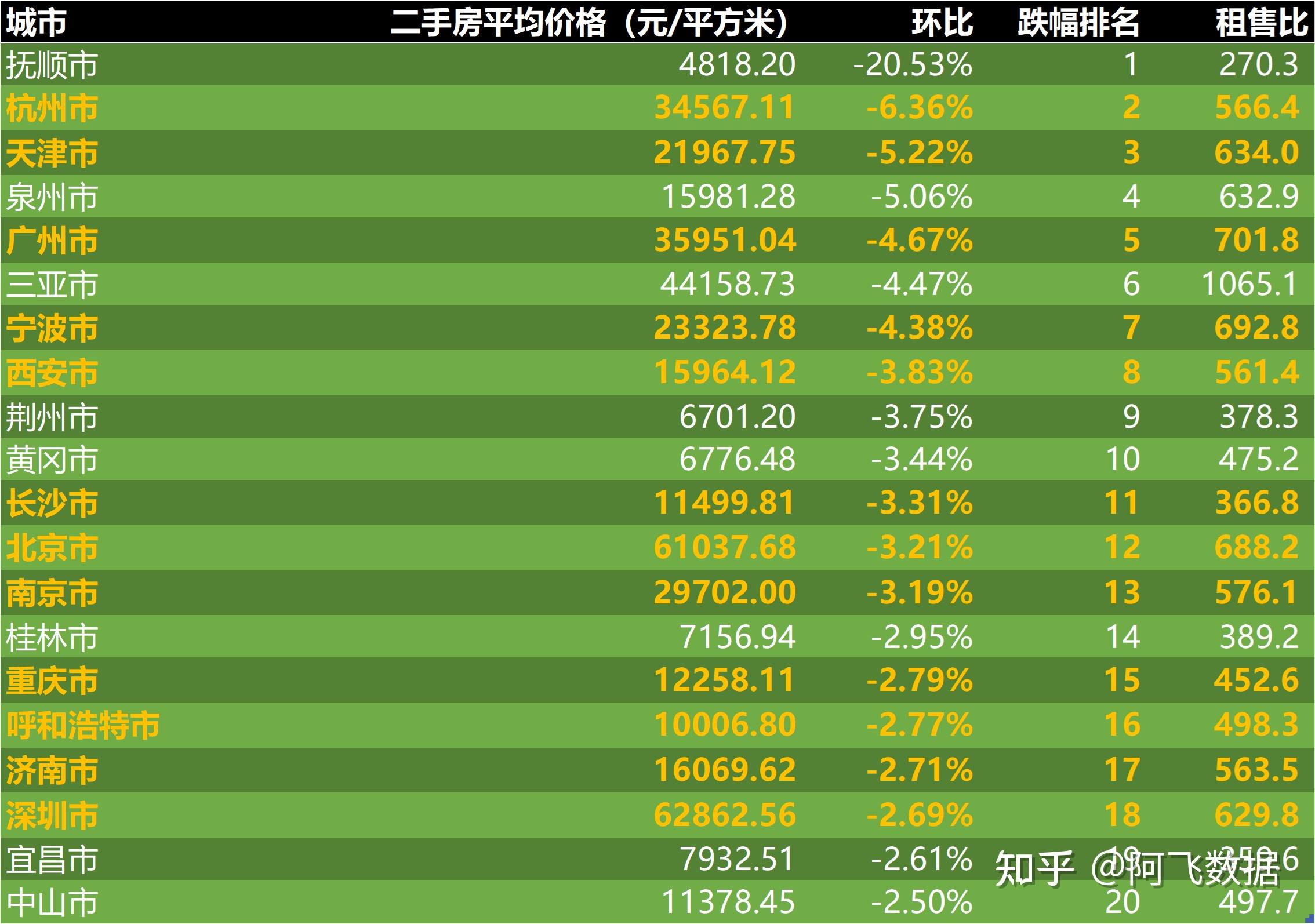 根据网络平台二手房数据监测,2023年4月第2周(2023年4月10日-2023年4月16日)二手房价格跌幅排行榜如下: