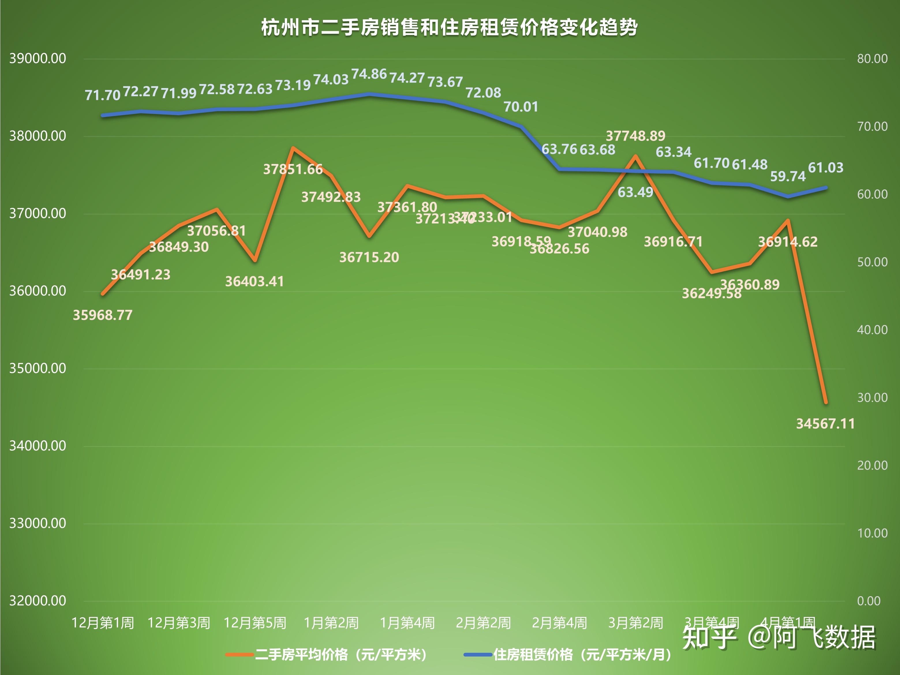 杭州市二手房价格震荡下行,环比(较之2023年4月第1周)跌幅6.36%。杭州市二手房价格自3月初达到今年的最高值后一直波动下跌,目前已经累计下跌8.43%,已经接近一成。