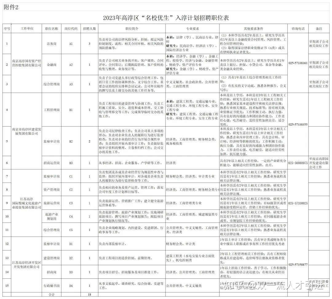 2.2023年高淳区“名校优生”入淳计划招聘职位表