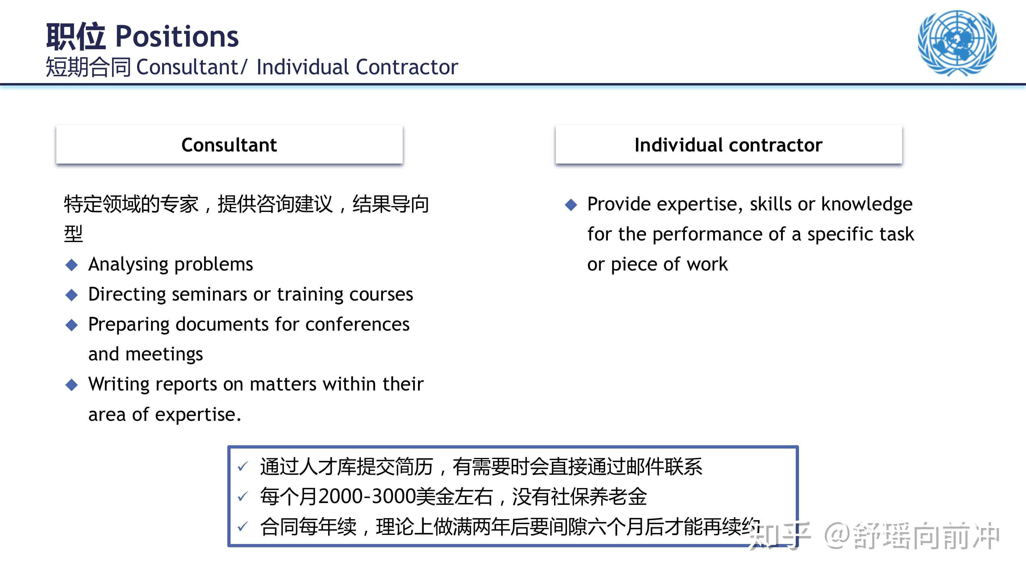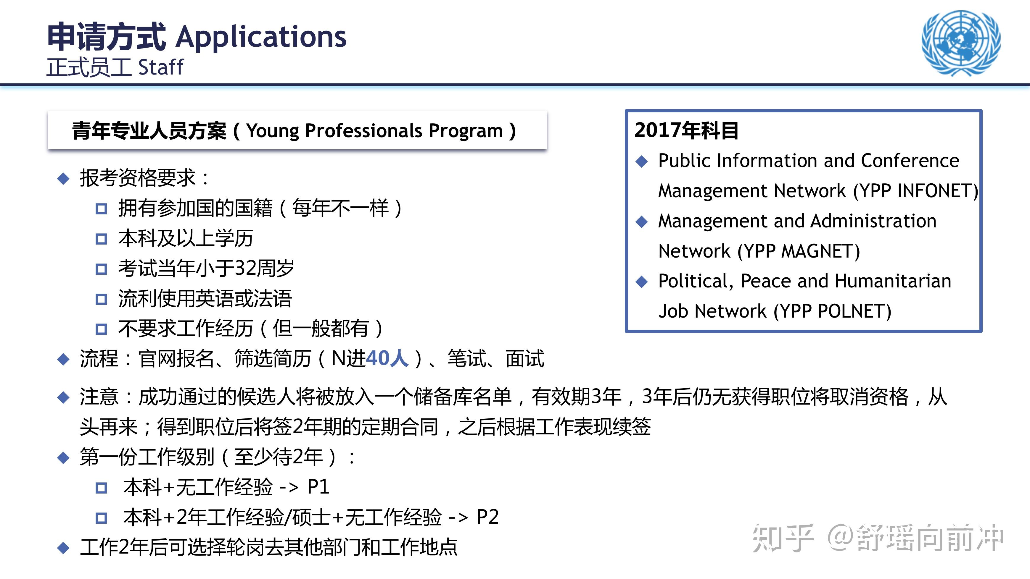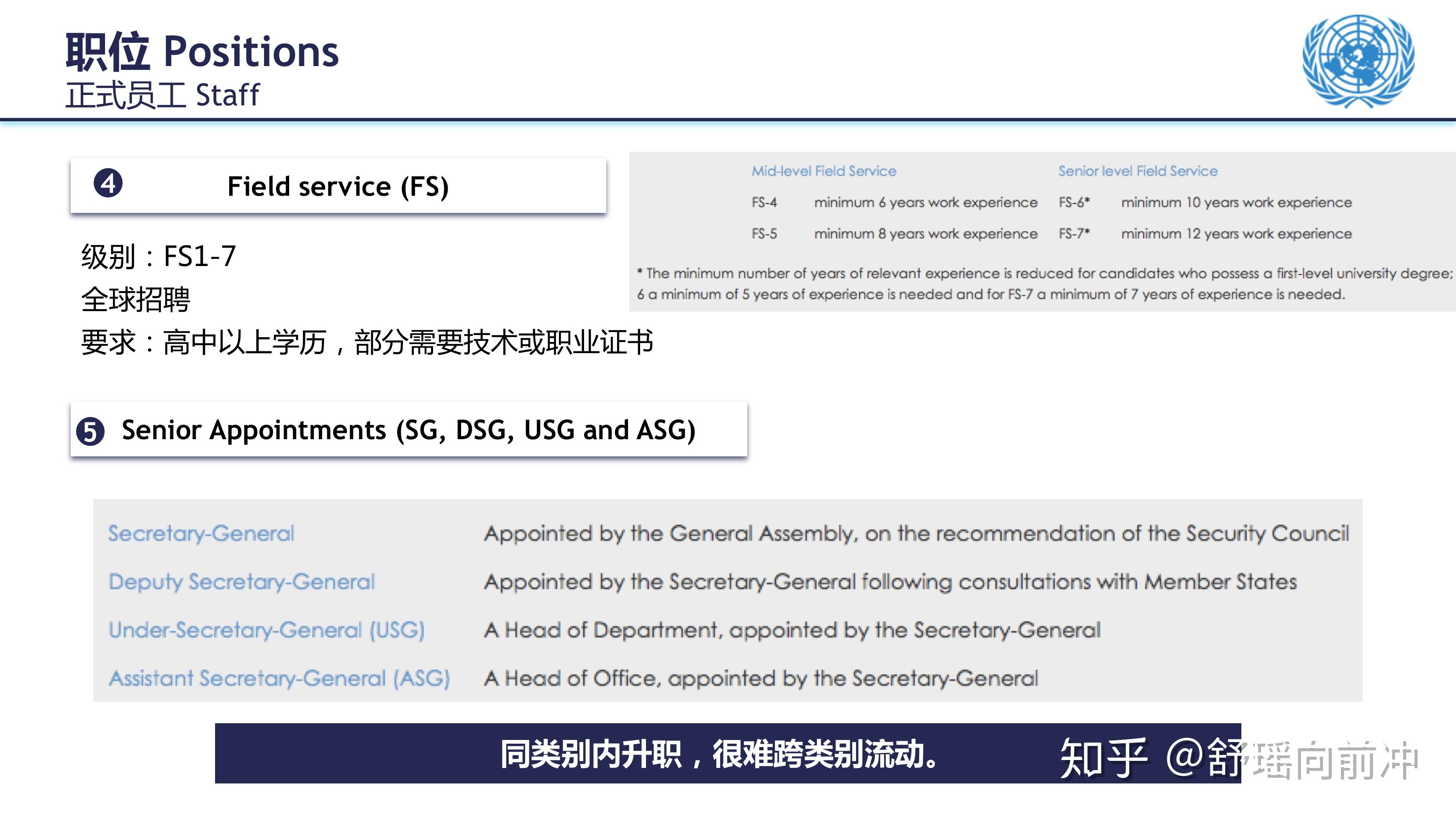 此外,联合国现在的趋势是在外部招 40岁+ 的事业有为的专业人才进入 UN ,而不是在内部逐步培养人才上升。