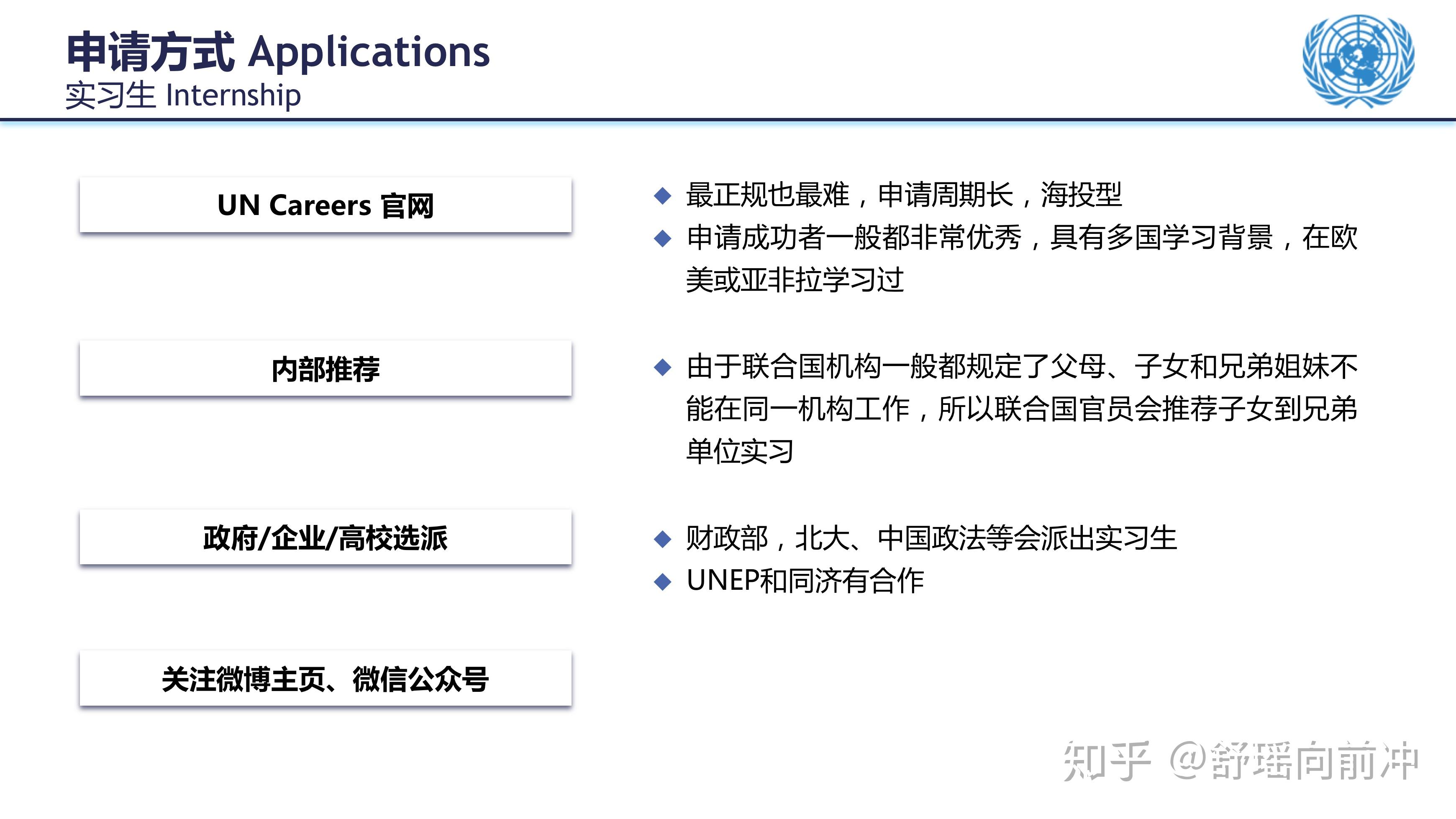 在中国,联合国的相关招聘信息大多时候是发布在新媒体上的,因此推荐关注想去的部门的微博主页、微信公众号等。