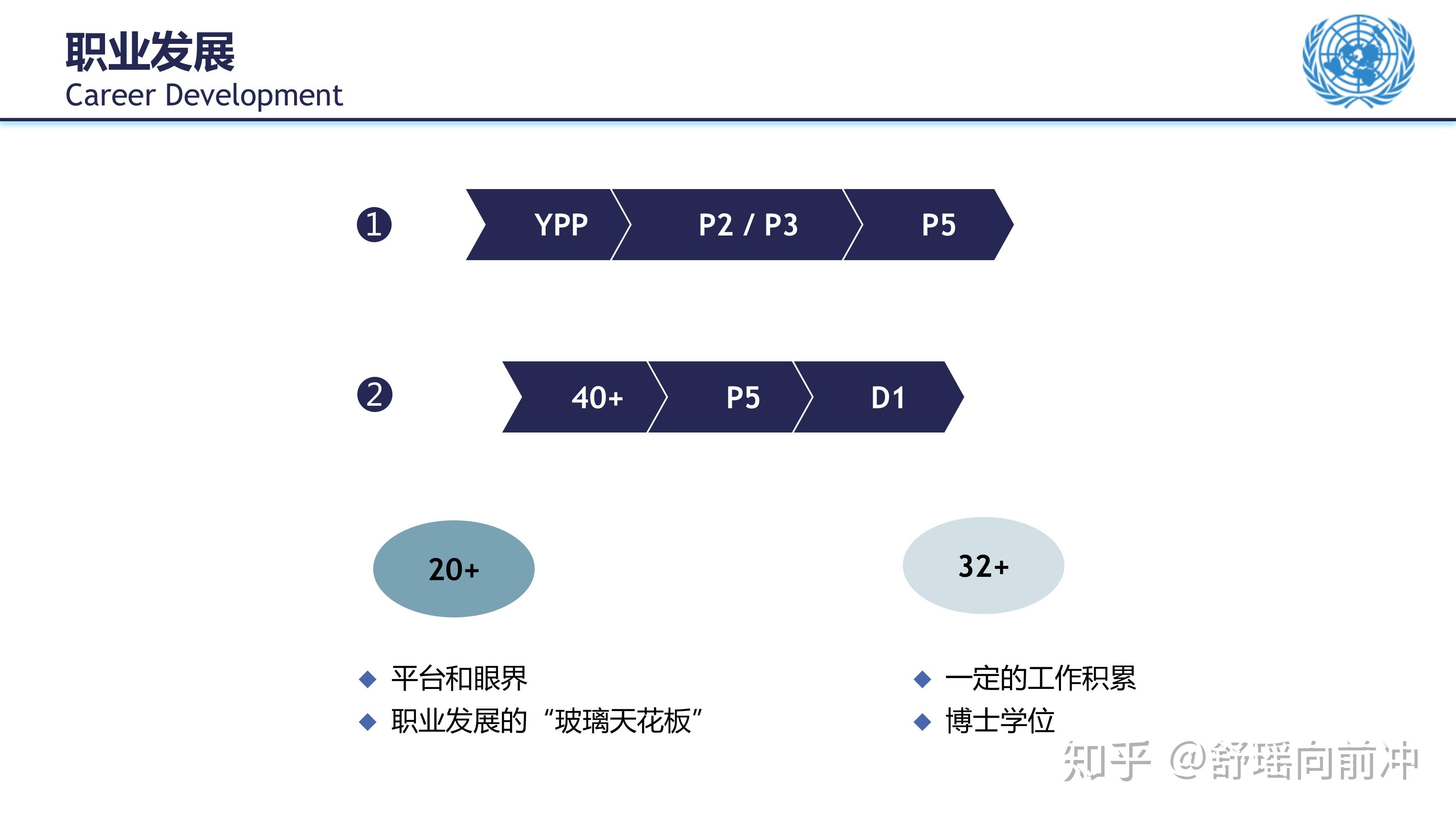 要是有能力发展,在 UN 外做到四十多岁再转 UN ,基本上 P5 可以直接拿到,未来还能有升级,努力的话到 D1 都说不定。