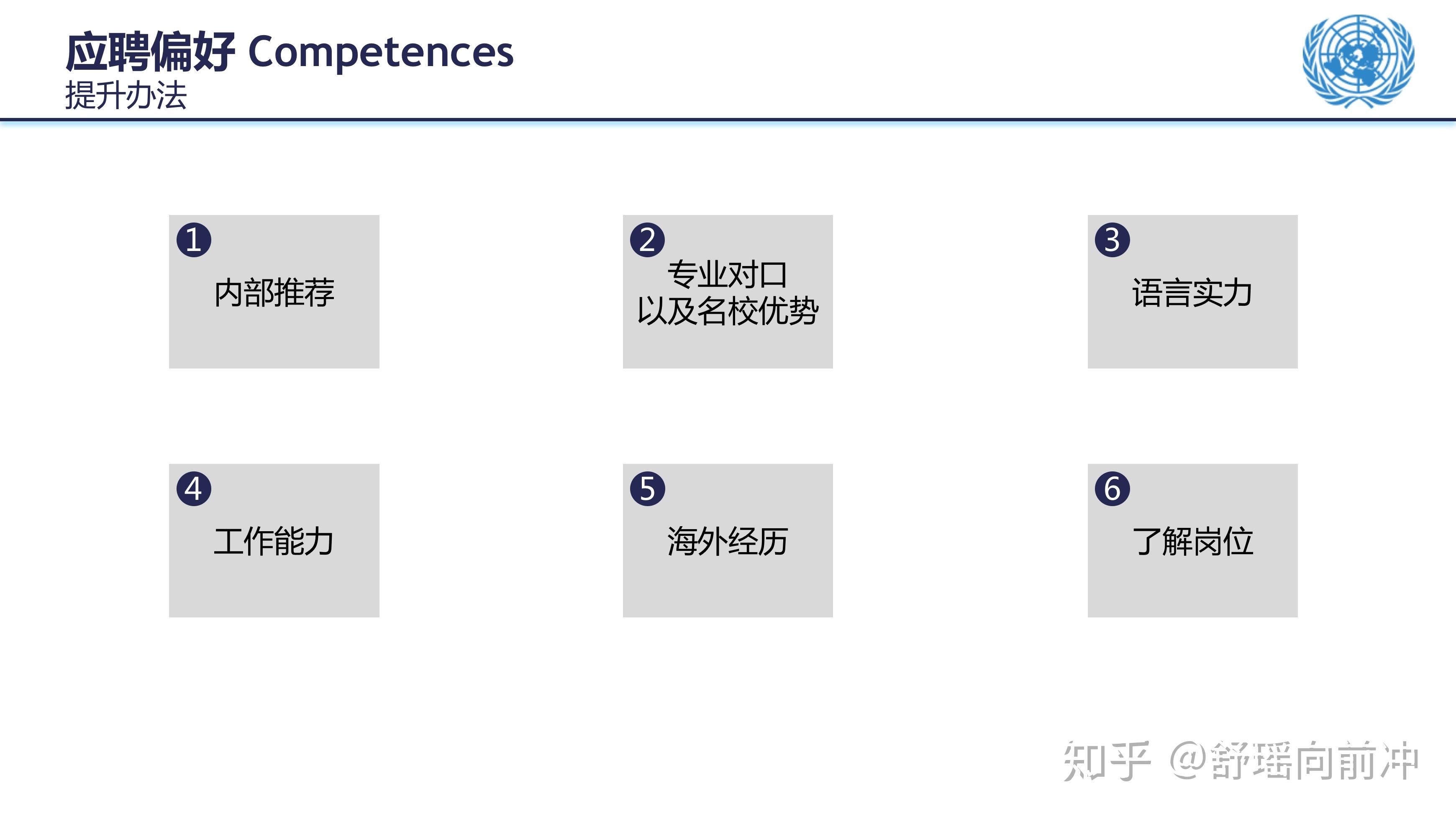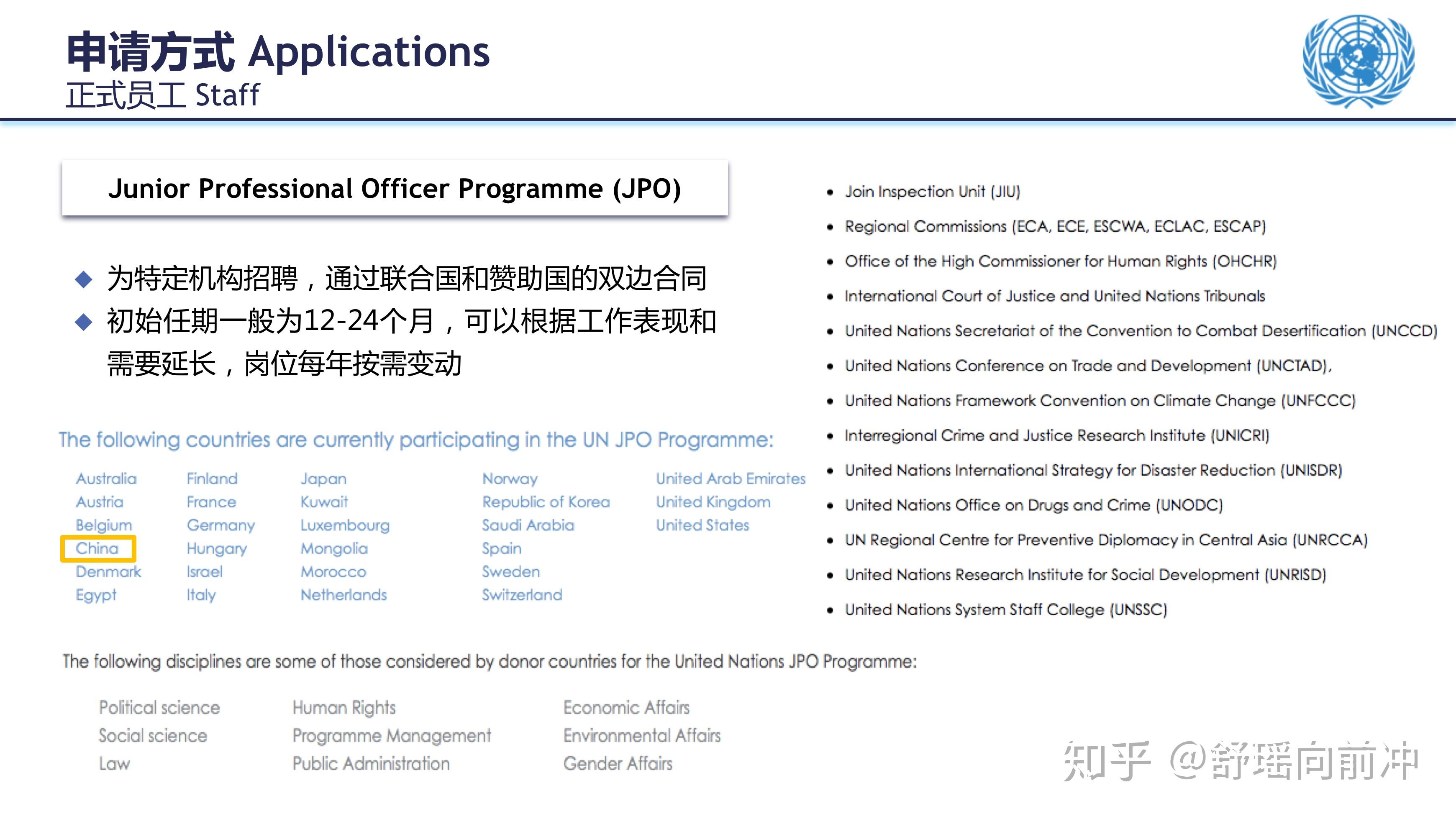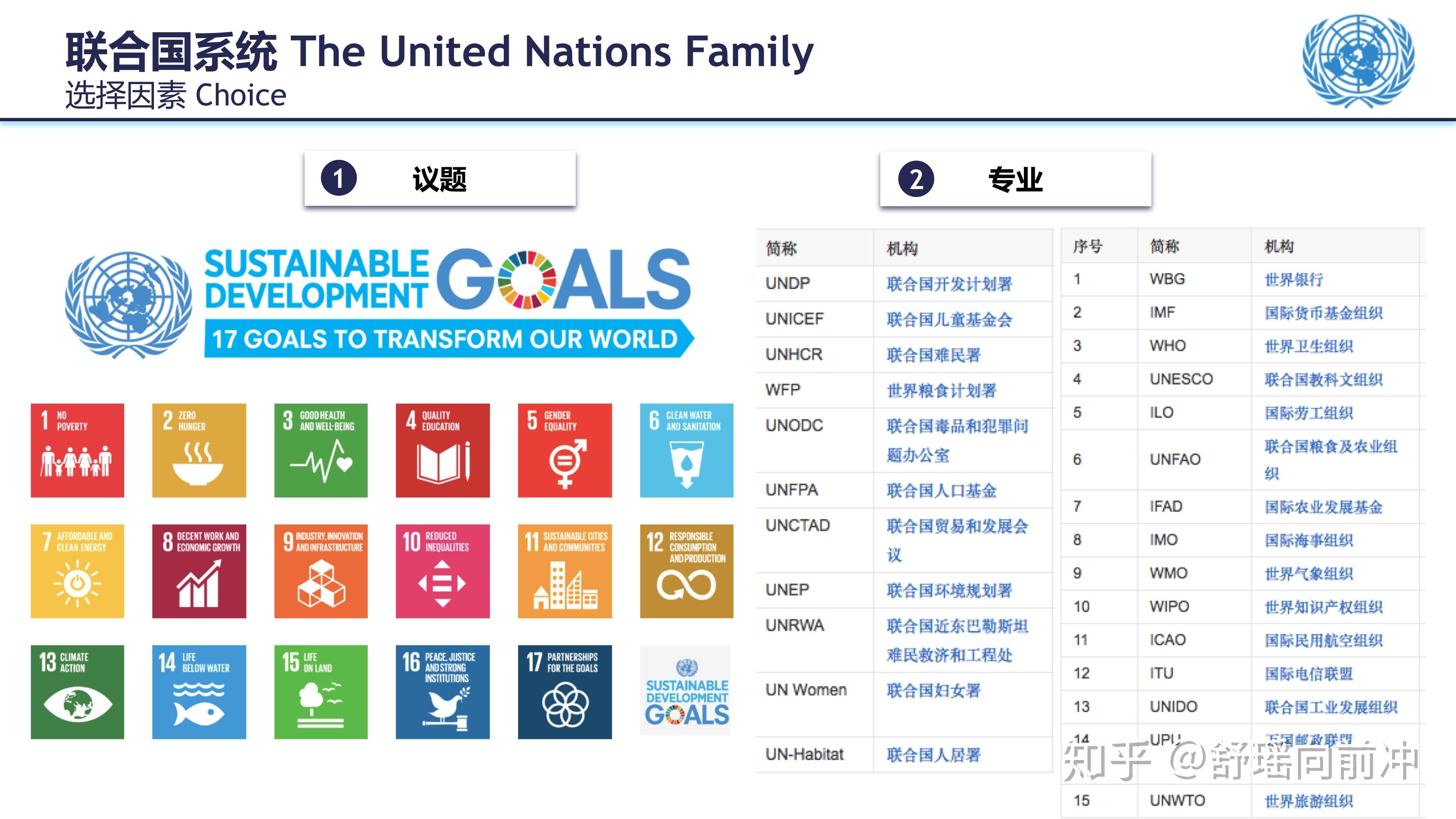 。比如我关心发展问题,在解决贫困和可持续发展方面有兴趣和相关经验,可以选择 UNDP;如果关注性别平等,可以选择妇女署;如果喜欢文化,可以选择 UNESCO 教科文组织。