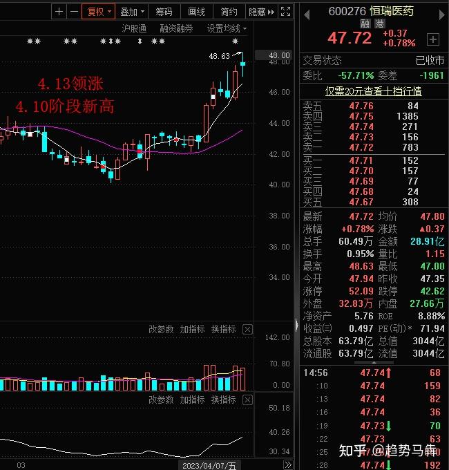 化药方向,马犇分析,分支较杂较多,如果实在不会分析交易方向,就盯着龙头恒瑞医药,今天再度刷新反弹新高,虽然冲高回落假阴线震荡,但上行趋势已经打开就不会轻易合上,回调是低吸机会。