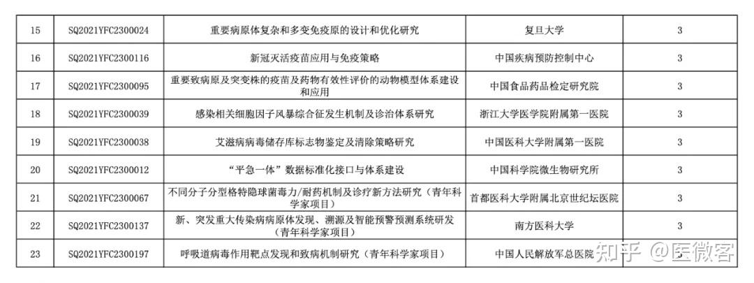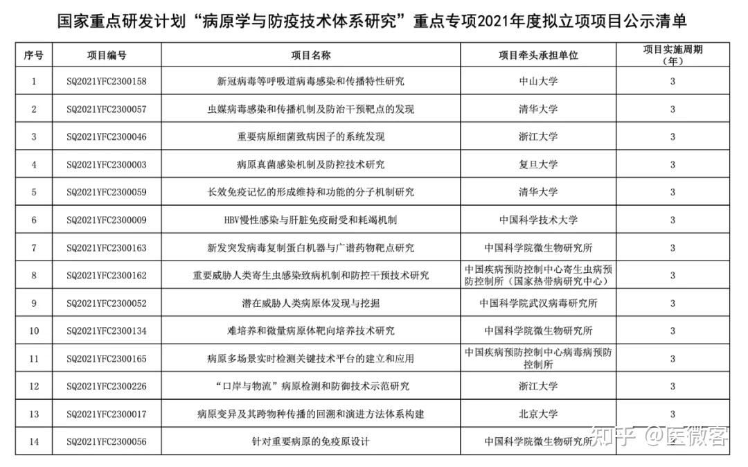关于国家重点研发计划“病原学与防疫技术体系研究”重点专项2021年度项目安排公示的通知