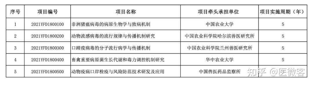 关于国家重点研发计划“动物疫病综合防控关键技术研发与应用”重点专项2021年度指南公开竞争项目及青年科学家项目安排公示的通知