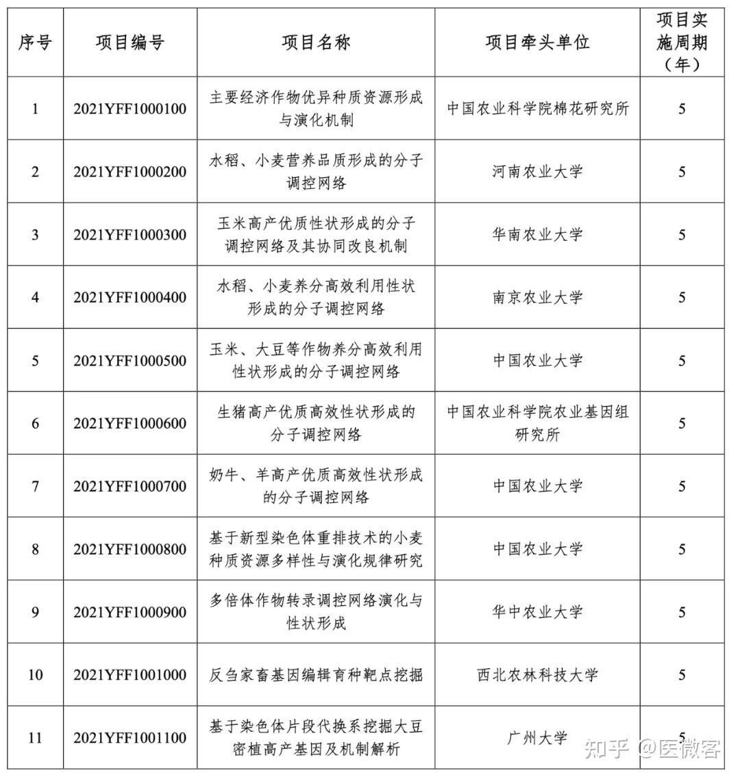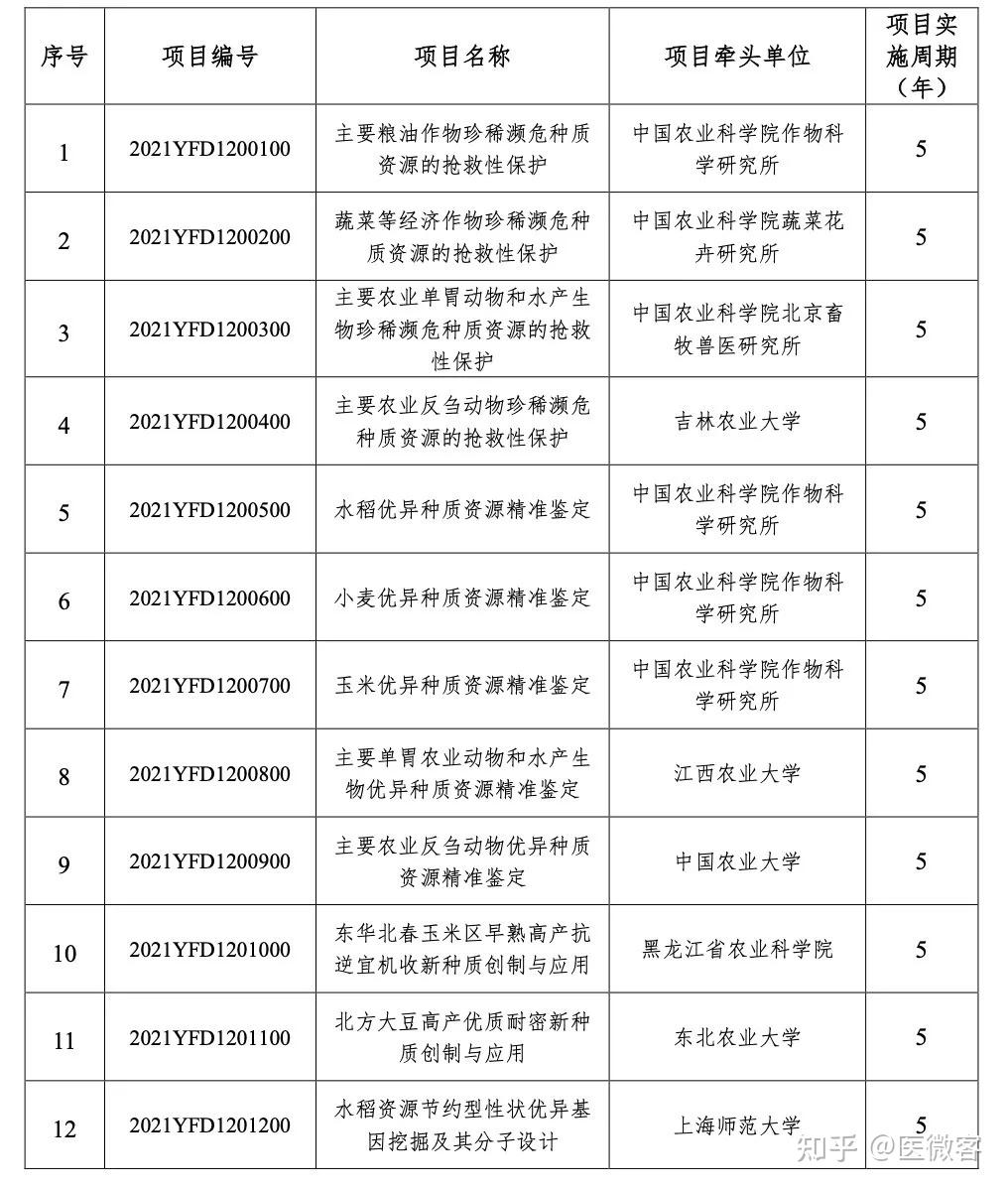 关于国家重点研发计划“农业生物种质资源挖掘与创新利用”重点专项2021年度常规项目和青年科学家项目安排公示的通知