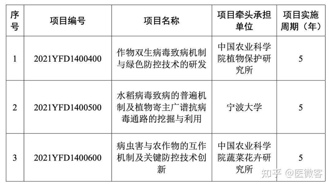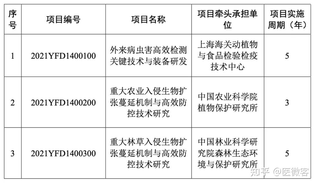 关于国家重点研发计划 “重大病虫害防控综合技术研发与示范”重点专项2021年度指南项目安排公示的通知