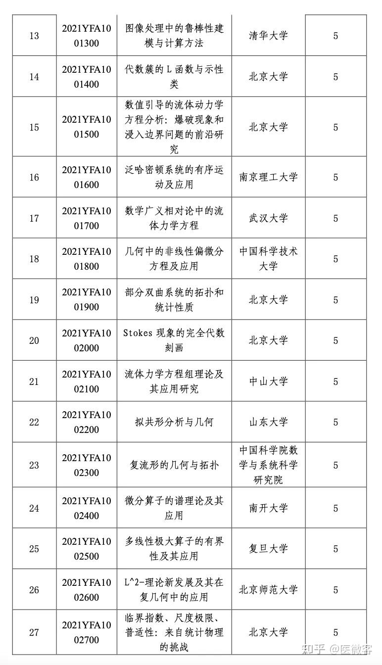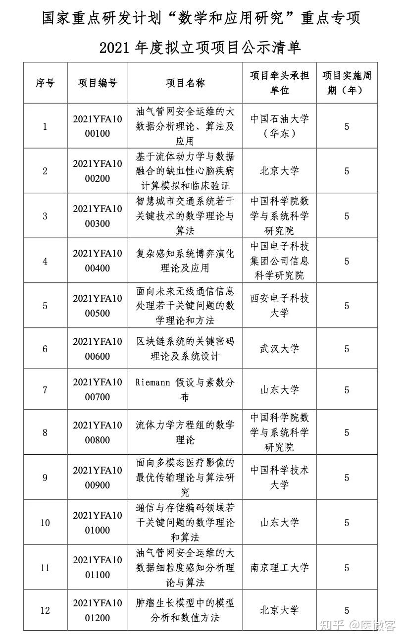关于国家重点研发计划“数学和应用研究”重点专项2021年度项目安排公示的通知