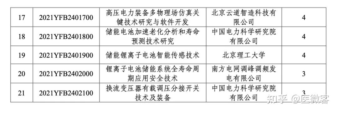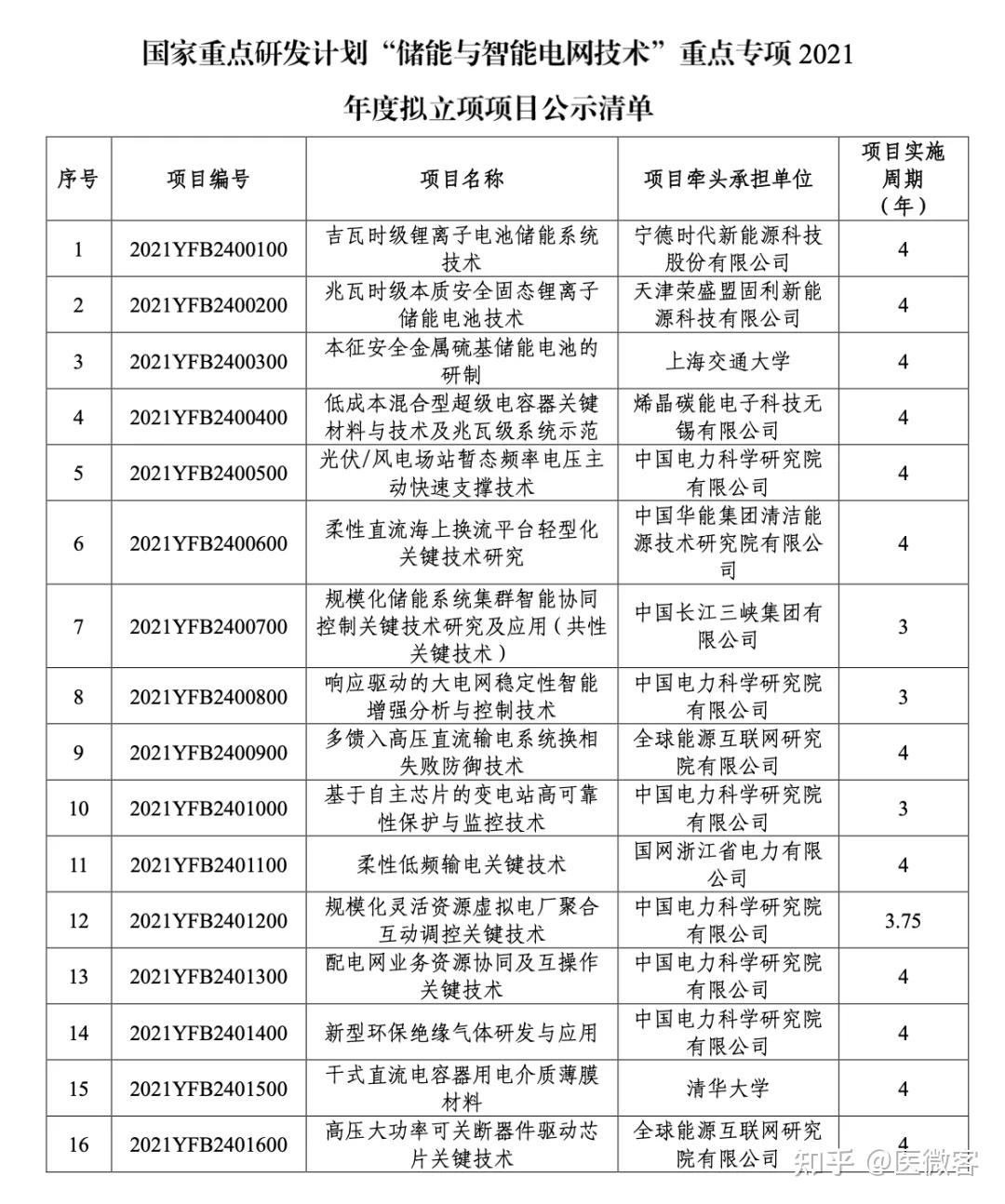 关于国家重点研发计划“储能与智能电网技术”重点专项2021年度拟立项项目安排公示的通知