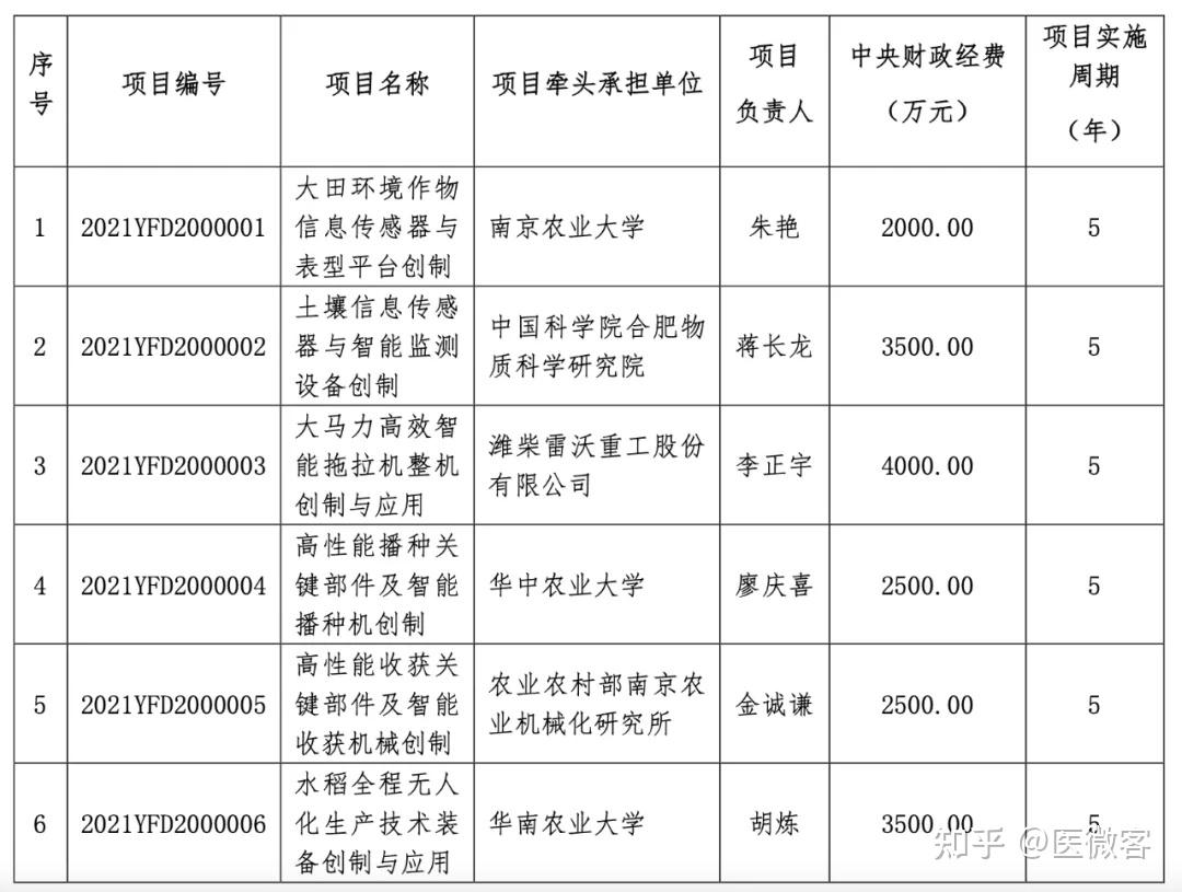 关于国家重点研发计划“工厂化农业关键技术与智能农机装备”重点专项2021年度常规项目安排公示的通知
