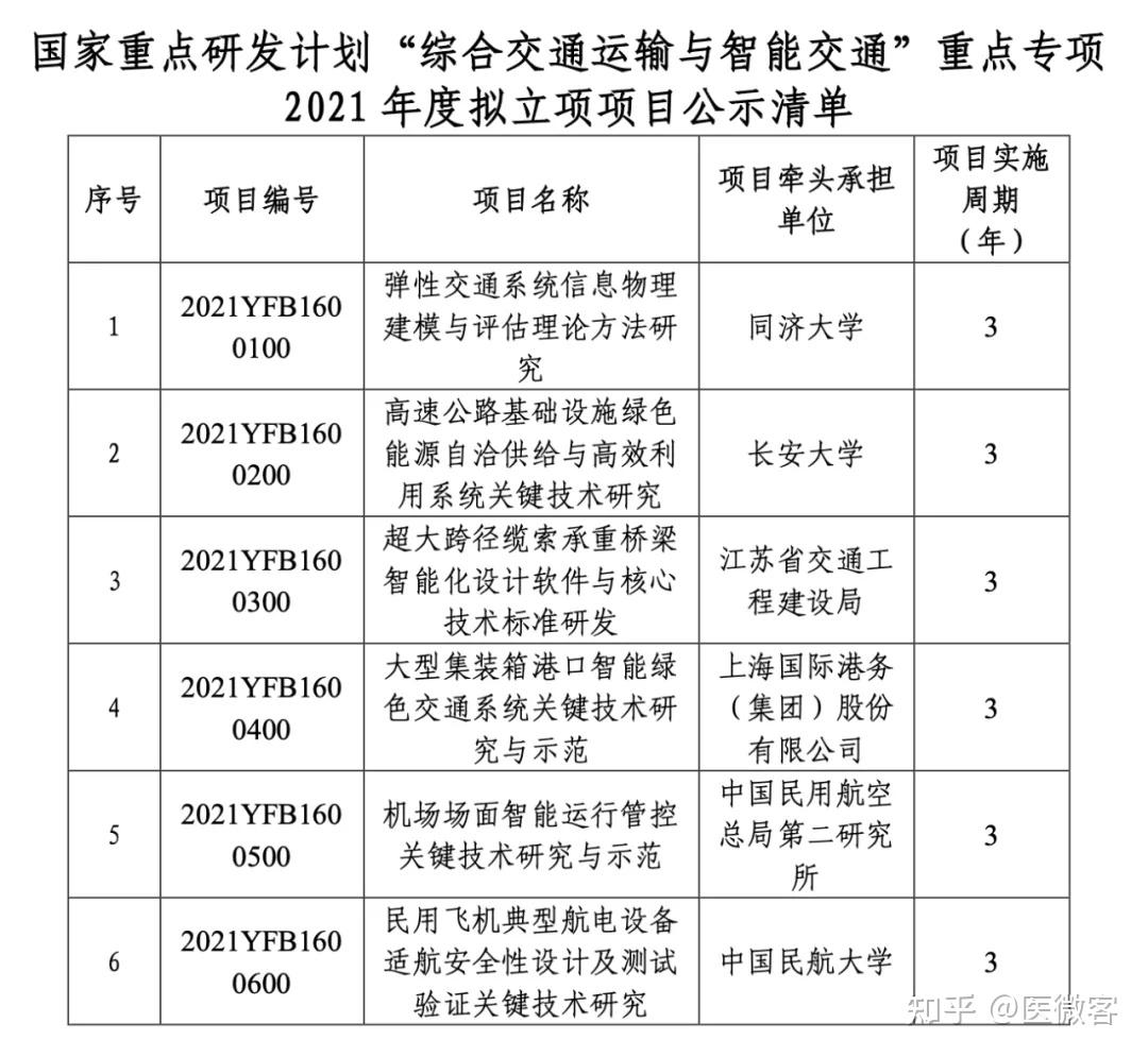 关于国家重点研发计划“综合交通运输与智能交通”重点专项2021年度项目安排公示的通知