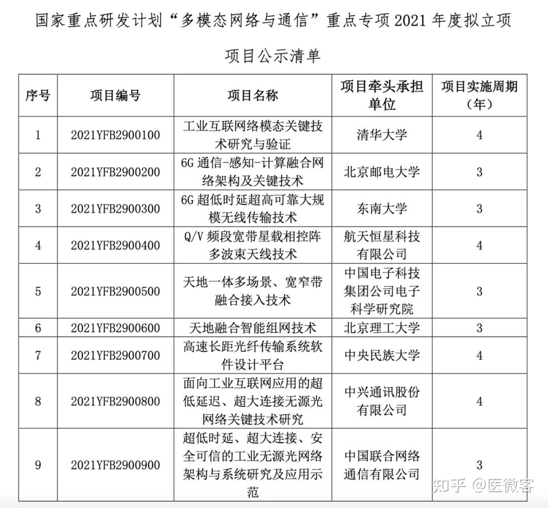 国家重点研发计划“多模态网络与通信”重点专项2021年度项目安排公示的通知